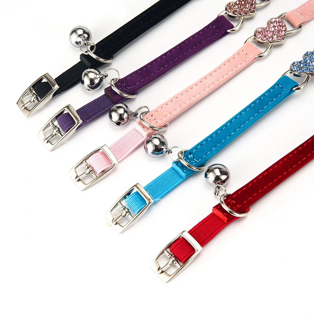 Plush Velvet Heart Jewel Bow Bell Collar