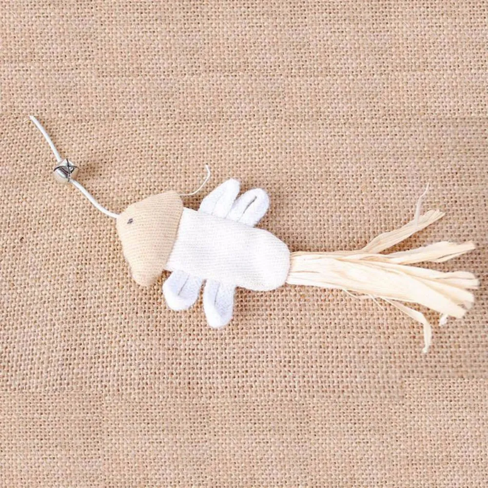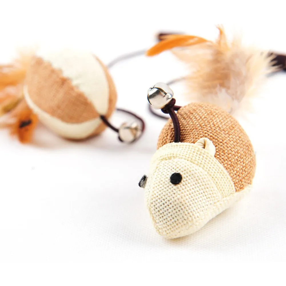 Wooden Mouse Feather Dangling Teaser Bell Cat Stick Wand Toy (2 Pack)